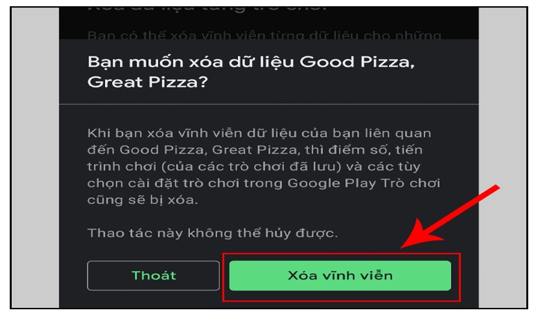+ Bước 3: Hãy bấm chọn Xóa vĩnh viễn để xóa đi dữ liệu của một trò chơi mà bạn đã chọn.