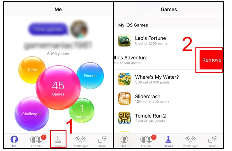 Bạn hãy mở ứng dụng Game Center. Hãy chọn Game. Bấm chọn tiếp trò chơi muốn xóa dữ liệu. Bấm chọn vào Remove.