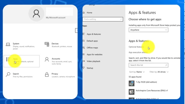 Bạn mở Settings. Chọn Apps. Chọn Optional Features.