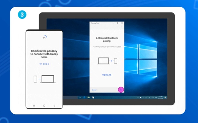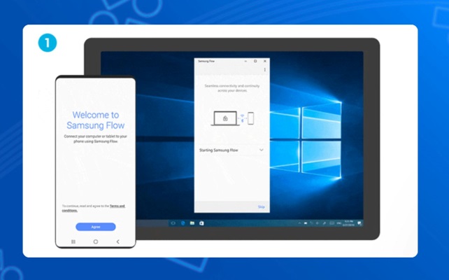 Trên điện thoại và máy tính thì tải và cài Samsung Flow từ cửa hàng ứng dụng tương ứng.