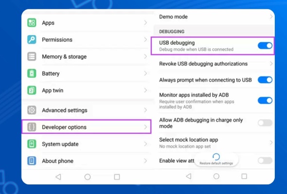 Bước 3: Thực hiện bật chế độ Gỡ lỗi USB (USB Debugging)