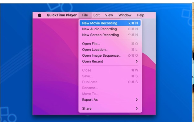 Trên Mac, bạn mở QuickTime Player. Bạn chọn File. Rồi chọn New Movie Recording.