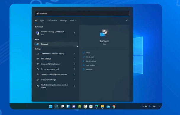 Sau khi cài xong, bạn nhấn Start. Bạn tìm và mở Connect. Màn hình máy tính sẽ hiển thị ra thông báo sẵn sàng nhận kết nối.
