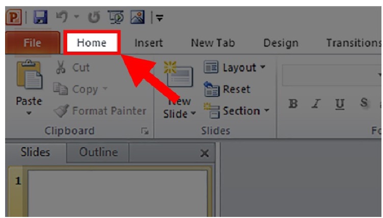 Bước 1: Bạn thực hiện mở file PowerPoint. Bạn bấm chọn Thẻ Home.
