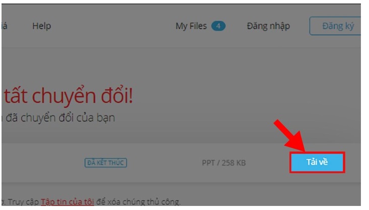 Bước 5: Bạn nhấn Tải file để tải được file PowerPoint vừa được chuyển từ file Word về.
