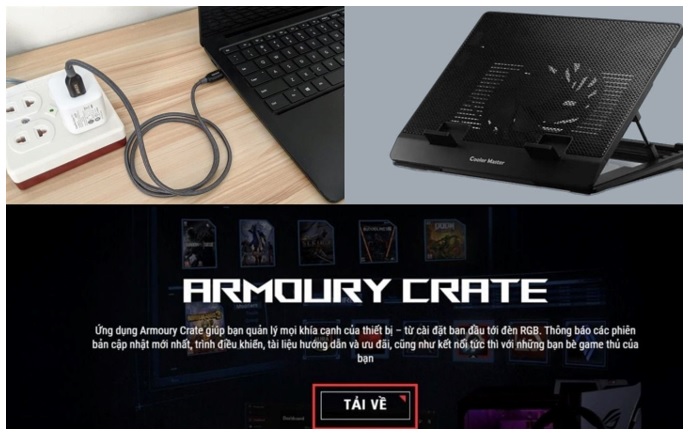 Bước 1: Bạn đặt laptop lên đế tản nhiệt để tạo ra khe hở giúp lưu thông không khí. Nếu như đế có nguồn điện riêng. Bạn hãy cắm vào ổ điện thay vì dùng cổng USB laptop để tránh cho hao pin. Lưu ý rằng: Một số dòng Asus chỉ cho phép được bật chế độ quạt mạnh khi laptop đang sạc. Do đó, bạn hãy đảm bảo máy được kết nối adapter chính hãng.