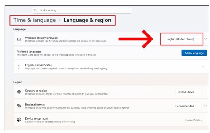 - Bước 3: Ở tại phần Windows display language thì bạn kiểm tra xem có ngôn ngữ nào khác ngoài English (United States) nữa không. Nếu như có thì hãy xóa các ngôn ngữ không cần thiết.