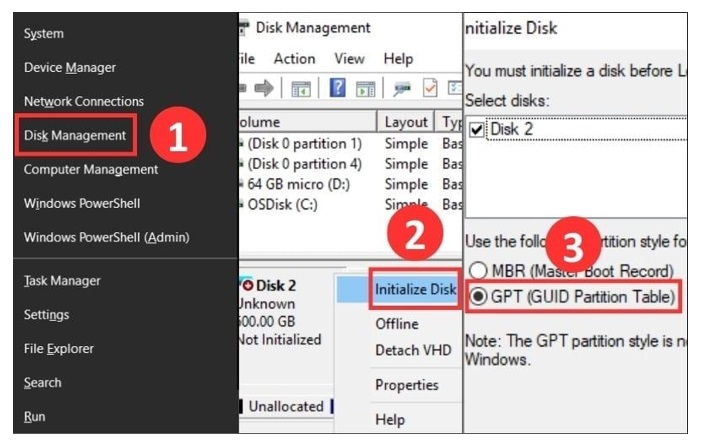 Khi hệ điều hành không thể nào đọc được dữ liệu nếu như bạn chưa thiết lập được ban đầu ổ cứng SSD (Initialize SSD). Thiết bị lúc này đây chỉ hiển thị dưới dạng Unallocated Space ở trong hệ thống quản lý thay vì ổ đĩa ở trên This PC hay File Explorer. Bạn cần phải khai báo và định dạng để hệ điều hành nhận diện ra và bắt đầu ghi dữ liệu.