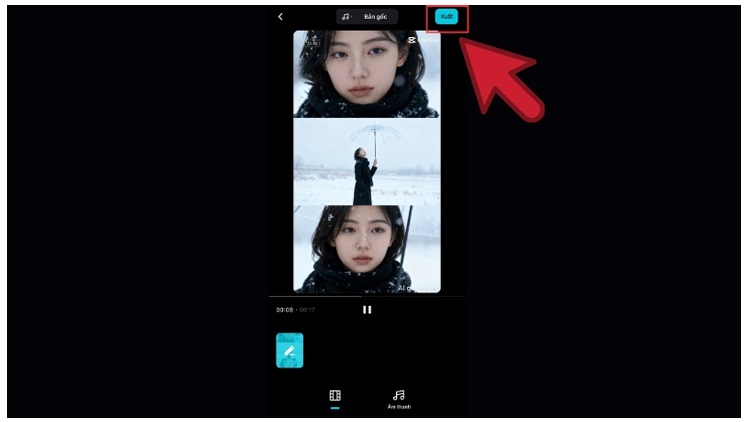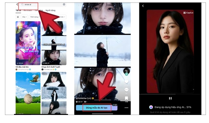 Bước 3: Bạn chọn ảnh chân dung rõ nét, chính diện. CapCut sẽ tự động thực hiện thêm hiệu ứng tuyết rơi, ánh sáng lạnh và cả khung cảnh mùa đông