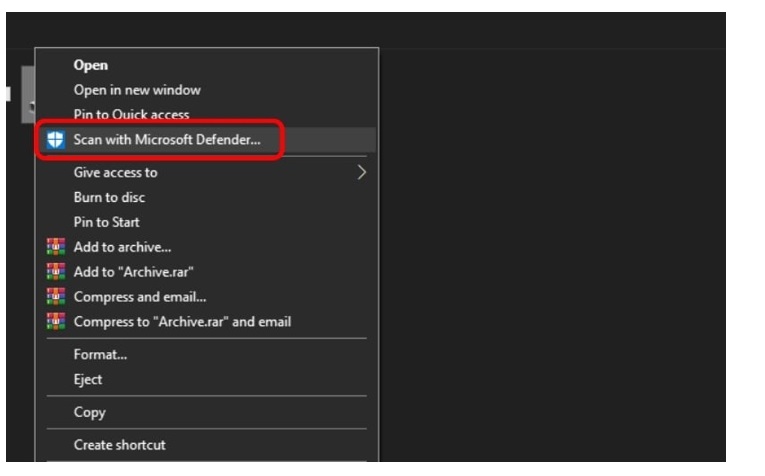 - Bước 3: Bạn chọn Scan with Microsoft Defender (hoặc là phần mềm diệt virus bạn đang cài đặt).