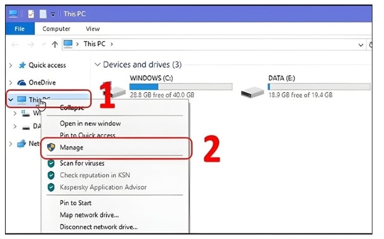 - Bước 2: Bạn thực hiện click chuột phải vào biểu tượng This PC. Bạn bấm chọn Manage.
