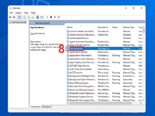 Bước 3: Tiếp tục bạn nhấp chuột phải vào mục App Readiness. Bạn chọn Open Services.