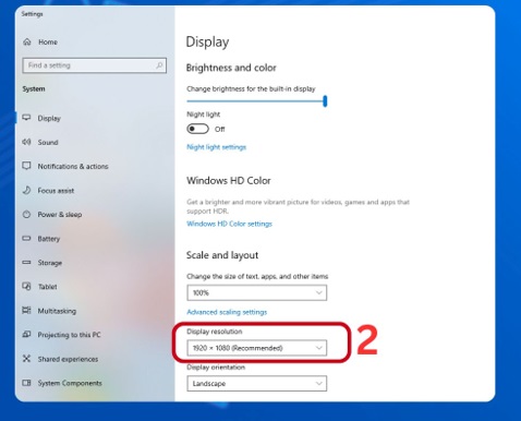 Bước 2: Ở tại mục Display resolution, bạn chọn độ phân giải được chú thích Recommend.