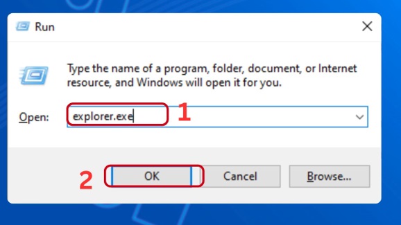 Bước 1: Bạn nhấn vào tổ hợp phím Windows + R. Bạn nhập lệnh explorer.exe. Bạn chọn OK.