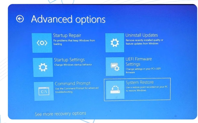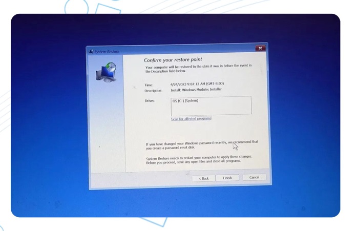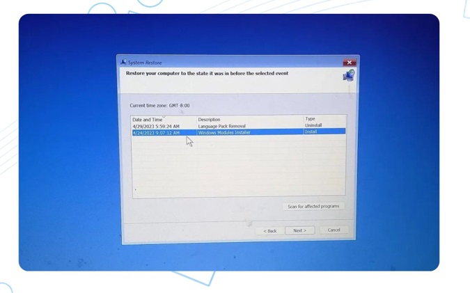 - Bạn chọn điểm khôi phục trước khi sự cố xảy ra.