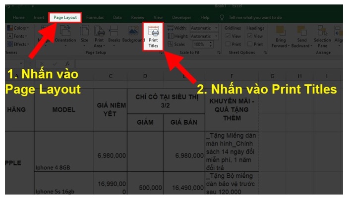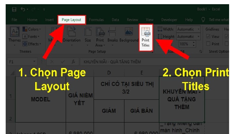 Bước 2: Bạn hãy nhấn chọn thẻ Page Layout. Bạn bấm chọn Print Titles.