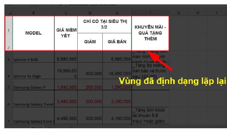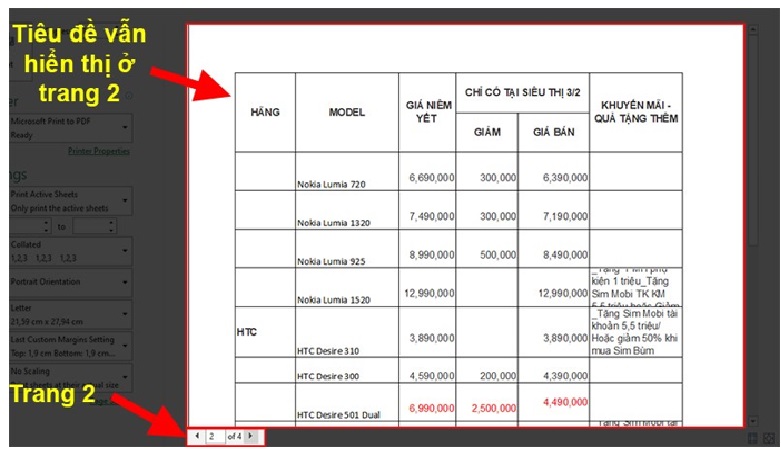 Trang 2 trở đi: thì Excel đã tự động thêm dòng tiêu đề vào ở đầu trang. Sẽ giúp bản in dễ nhìn hơn hẳn.