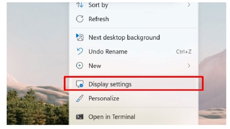 · Bước 1: Bạn hãy nhấn chuột phải vào tại bất kỳ vị trí trống nào trên màn hình Desktop. Và bấm chọn Display settings.