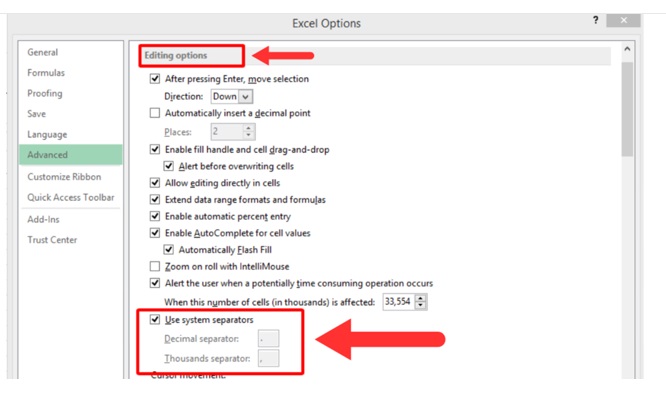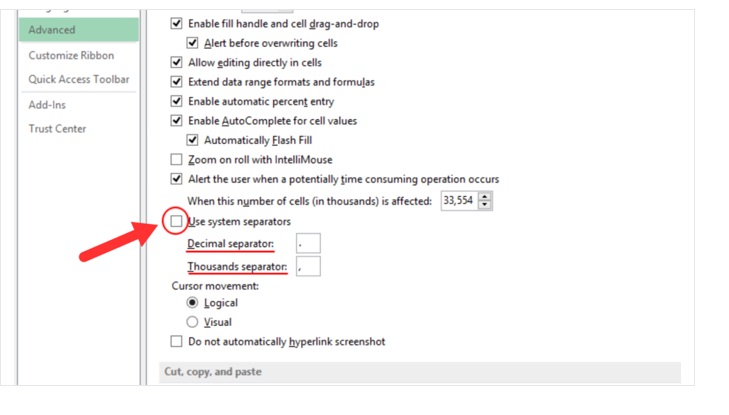 Một trong những vấn đề mà người dùng Excel thường mắc phải là việc sử dụng dấu phân cách chữ số thập phân. Ở một số quốc gia thì dấu chấm (.) được sử dụng để làm dấu phân cách thập phân. Trong khi đó thì ở các quốc gia khác, dấu phẩy (,) lại là phổ biến hơn. Vậy nên, nếu như cài đặt Excel của bạn không phù hợp với cái quy tắc phân cách thập phân ở nơi bạn đang sinh sống và làm việc thì những lỗi dữ liệu rất dễ xảy ra.