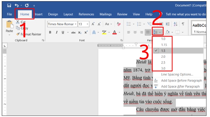 Để có thể giãn dòng ở trong Word bằng Paragraph, ở tại tab Home thì bạn nhấn chọn biểu tượng giãn dòng ở trong mục Paragraph. Bạn thực hiện chọn thông số giãn dòng theo như ý muốn của bạn.