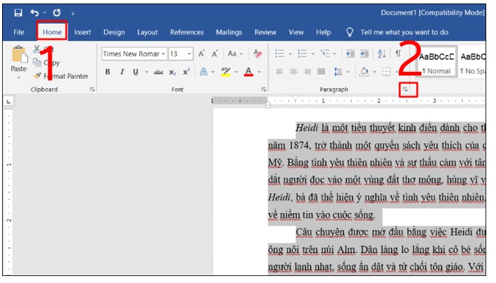 Bước 1: Ở tại tab Home, bạn hãy nhấn vào mũi tên góc phải ở trong nhóm Paragraph.