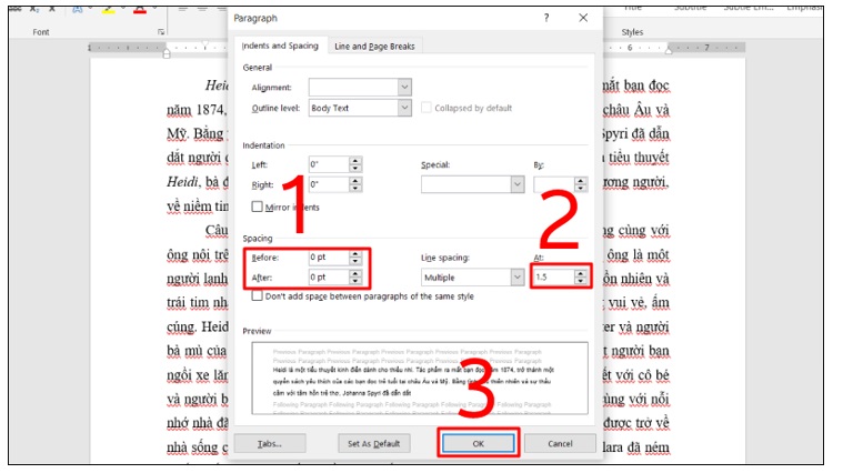 Bước 2: Ở tại tab Indents and Spacing, bạn hãy chọn Before để giãn dòng phần trên văn bản hoặc là After để giãn dòng ở phần dưới văn bản. Bạn hãy nhập thông số giãn dòng ở tại mục At. Bạn nhấn vào OK.