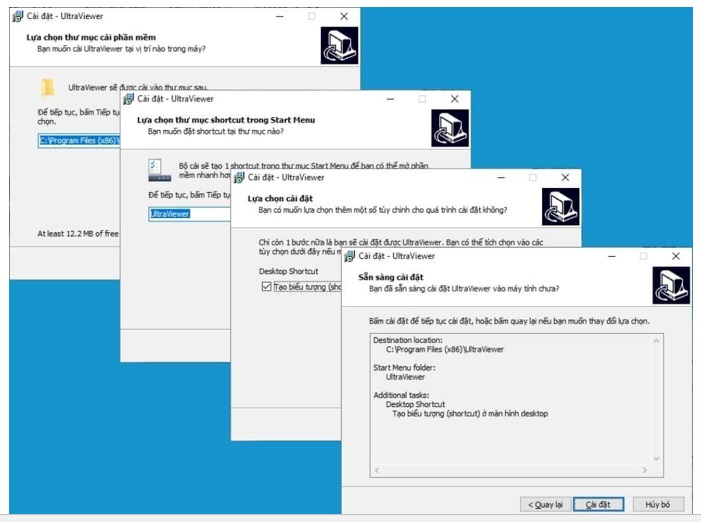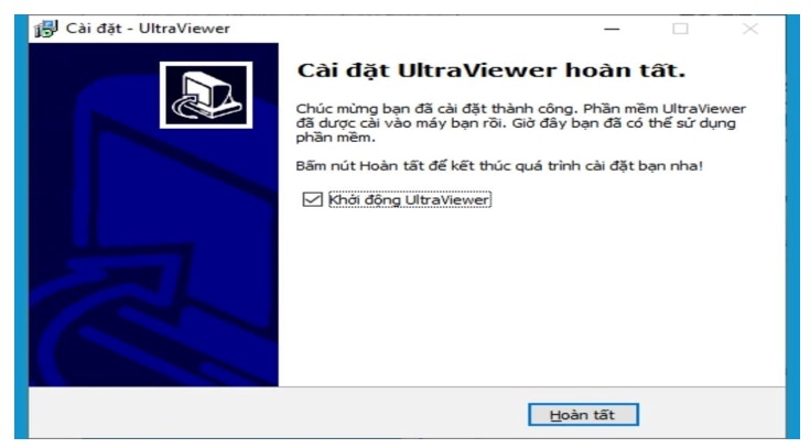 Cuối cùng thì bạn nhấn vào Cài đặt để tiến hành việc cài đặt UltraViewer. Và bạn nhấn vào Hoàn tất khi hoàn tất quá trình cài đặt nhé.