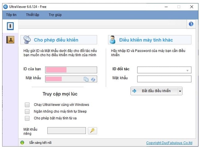 Để thực hiện kết nối và điều khiển được máy tính từ xa (cụ thể là máy tính B) thì bạn hãy nhập ID của đối tác và mật khẩu của máy tính B vào ở cả 2 khung bên mục Điều khiển máy tính khác ở trên máy tính A nhé. Thông tin được cung cấp ở ứng dụng UltraViewer cho việc đã được cài đặt trên máy tính B ở mục Cho phép thực hiện điều khiển.