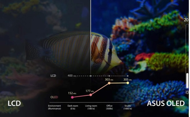 Màn hình OLED duy trì được độ sáng và màu sắc ổn định ở mọi góc nhìn. Và gần như không bị biến màu hay là phản chiếu ánh sáng khi quan sát từ hai bên. Điều này đặc biệt hữu ích khi ta chia sẻ nội dung, thảo luận nhóm hoặc là xem phim cùng nhiều người.