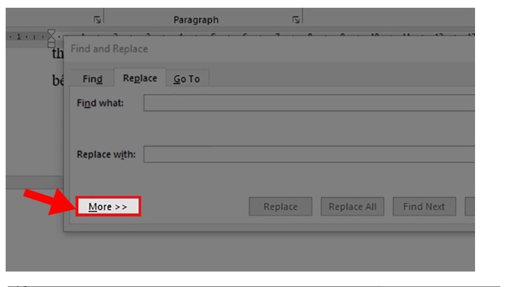 Bước 4: Bạn bấm chọn mục Find what. Rồi chọn More.