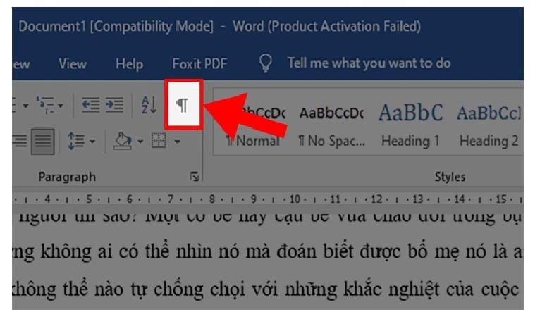 Bước 2: Bạn đi đến phần Paragraph. Bạn hãy nhấp chọn vào ký tự Show/Hide.