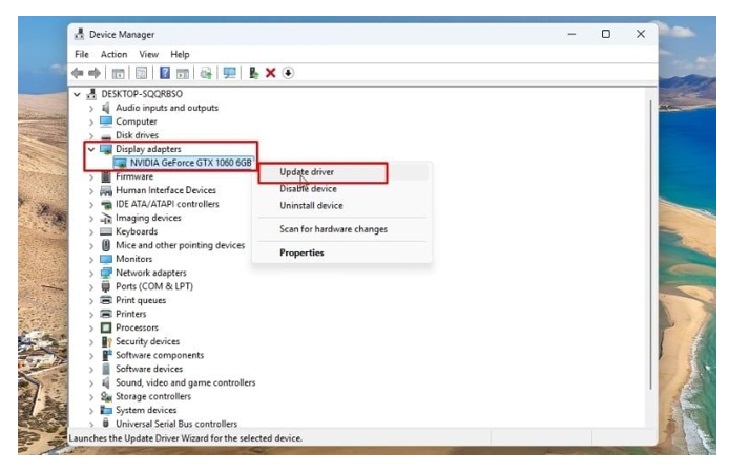 - Bước 2: Bạn hãy tìm mục Display Adapters. Bấm chuột phải vào ở tên card đồ họa và nhấn chọn Update Driver.