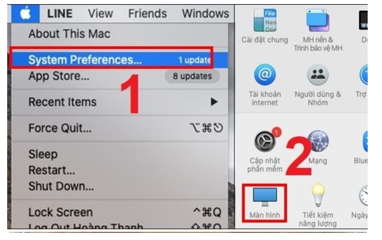 - Bước 1: Bạn nhấn vào Menu Apple. Nhấn chọn vào System Settings (hoặc là System Preferences trên các phiên bản macOS cũ). Rồi chọn tiếp Displays (Màn hình).