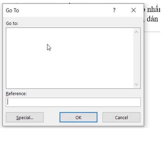 Bước 2: Bạn bấm phím F5 ở trên bàn phím để mở hộp thoại Go To. Sau đó các bạn thực hiện bấm vào mục Special. Công dụng của hộp thoại này là để đi đến các vị trí đặc biệt ở trong vùng ô được chọn.