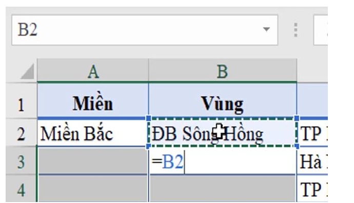 Bước 4: Các bạn thực hiện nhập biểu thức là =B2 bởi vì ô đang được lựa chọn là ô B3. Cho nên dữ liệu cần điền vào sẽ giống như với dữ liệu của ô B2.