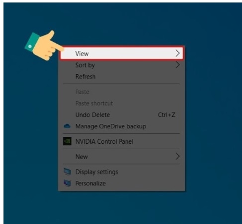Bước 1: Bạn click chuột phải vào một vị trí trống trên màn hình Desktop. Sau đó bạn chọn "View".