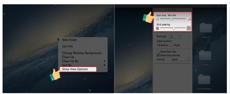 Bước 1: Bạn click chuột phải vào bất kỳ vị trí nào ở trên màn hình MacBook. Bạn Chọn "Show View Options".